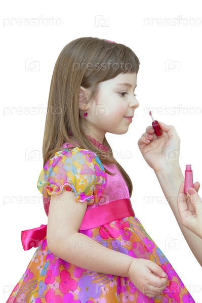 Мама красит губы дочке