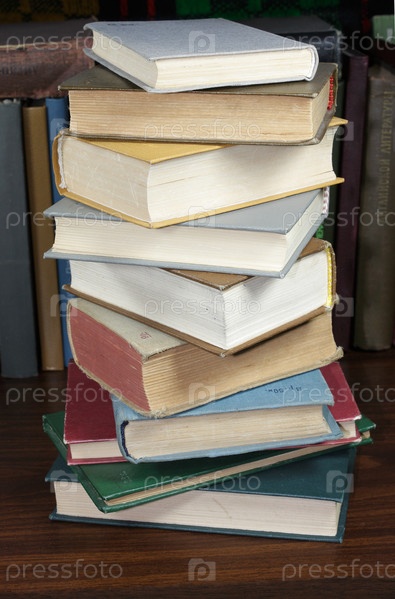 Стопка книг на фоне книжной полки