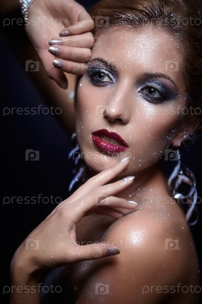 Женщина с блестящим макияжем