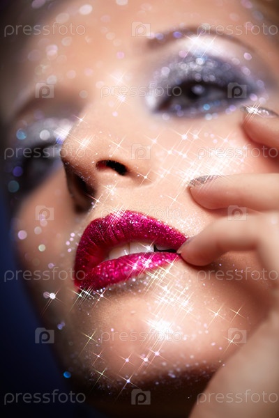 Женщина с блестящим макияжем