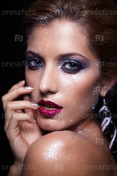 Женщина с блестящим макияжем
