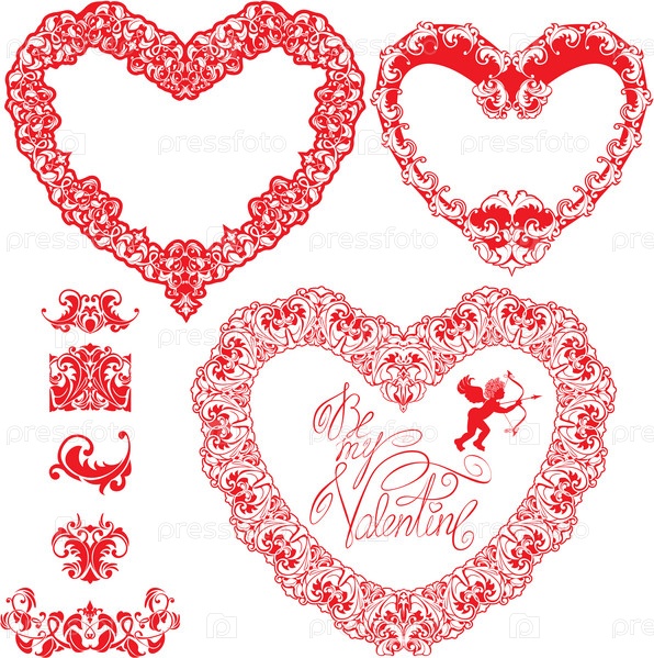 Набор винтажных сердец и каллиграфических элементов