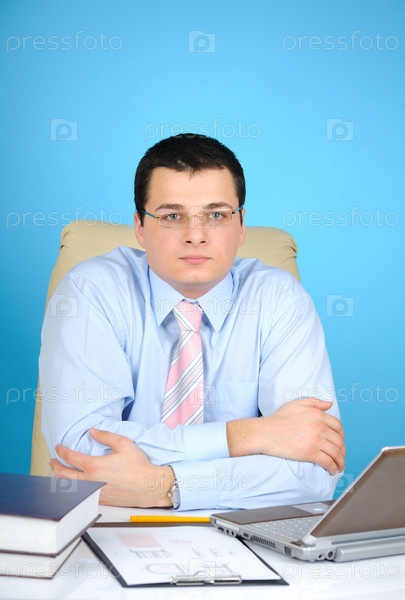 галстук костюм синий хорошо книжный стол белая улыбка график молодой усталый