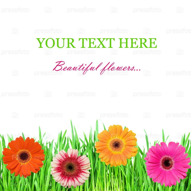 Шаблон для поздравления с зеленой травой и цветами