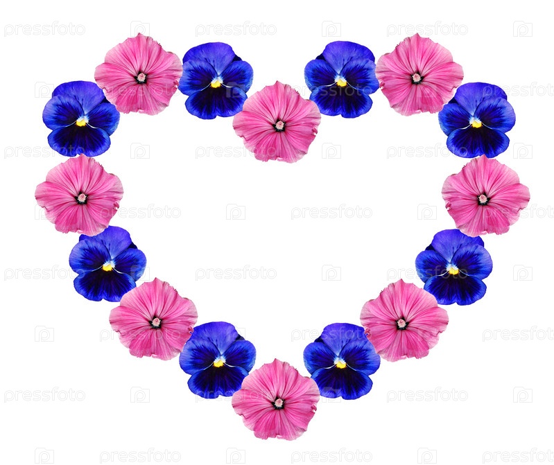 Рамка из цветов в форме сердца на белом фоне