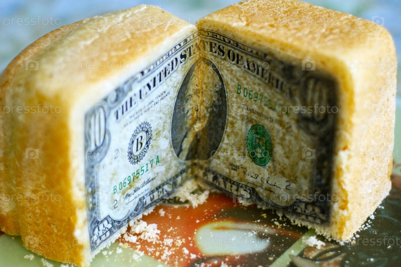 Разрезанный хлеб и доллары
