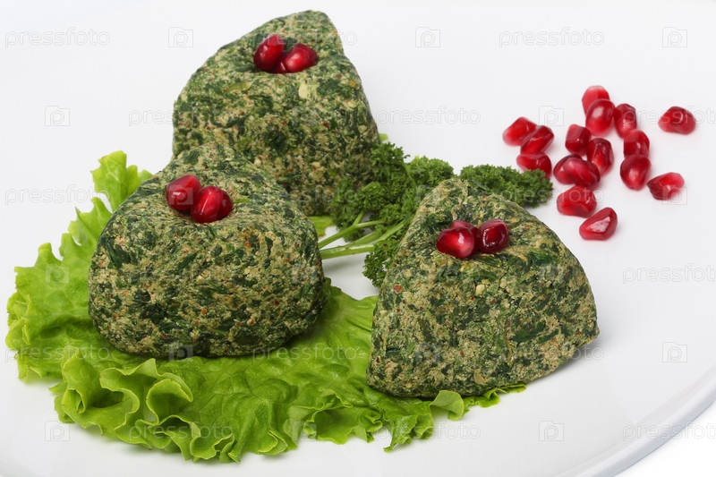 Овощной паштет с зернами граната на листе салата