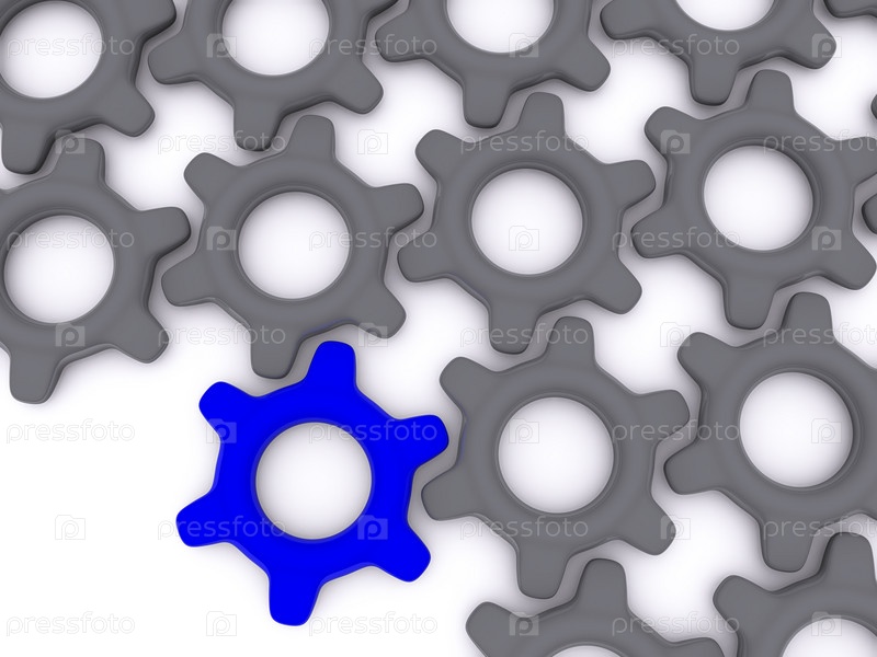 Синяя шестеренка на фоне обыкновенных серых