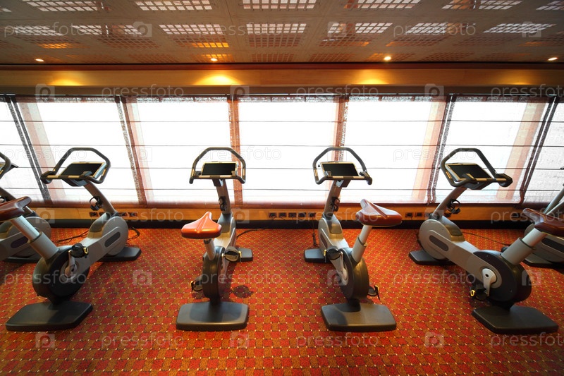 Интерьер большого тренажерного зала на борту круизного лайнера