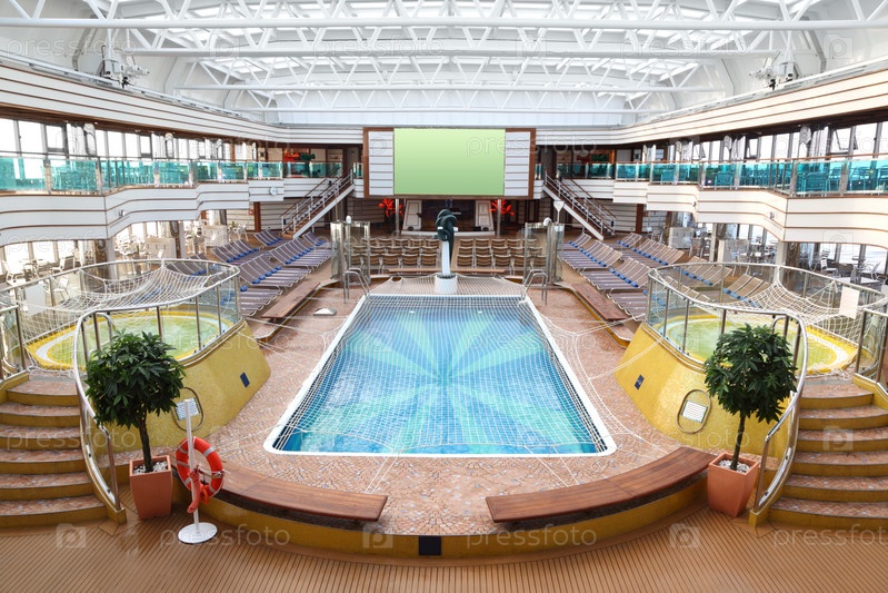 Интерьер большого зала для отдыха на борту круизного лайнера
