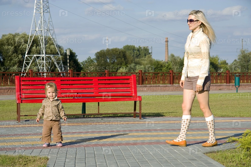 Портрет молодой мамы с дочерью на прогулке