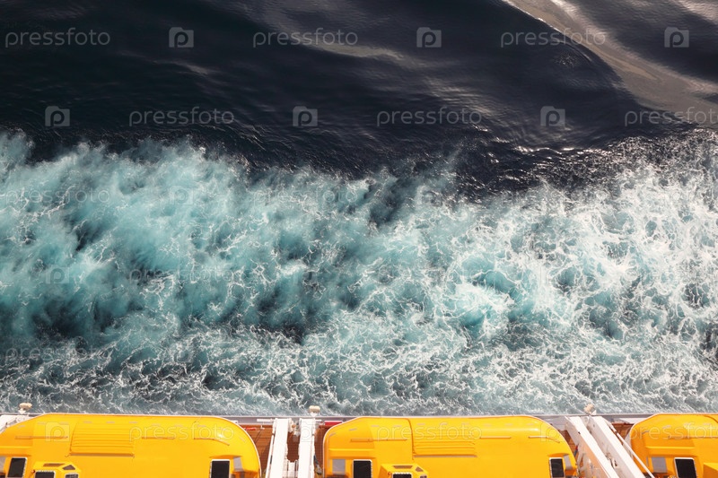 Вид на воду с верхней палубы круизного лайнера