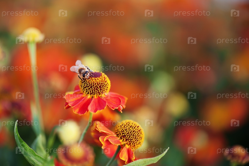 Медоносная пчела на красном цветке