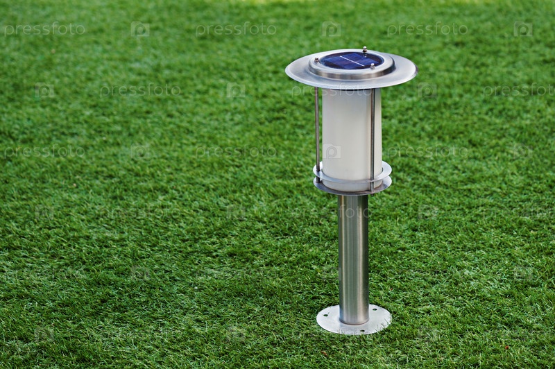Солнечный фонарь на зеленой траве
