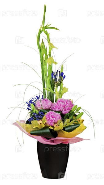 Букет из орхидей, пионов и гладиолусов