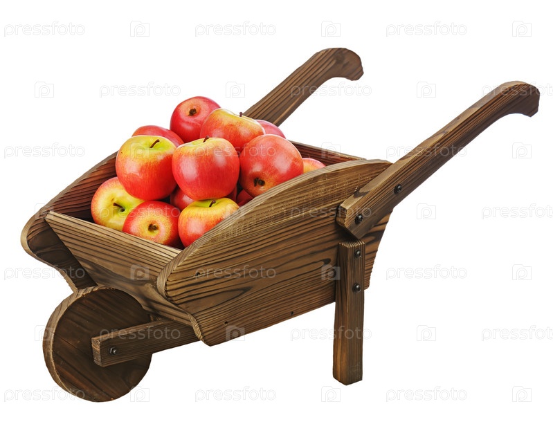Красные яблоки в деревянной тележке