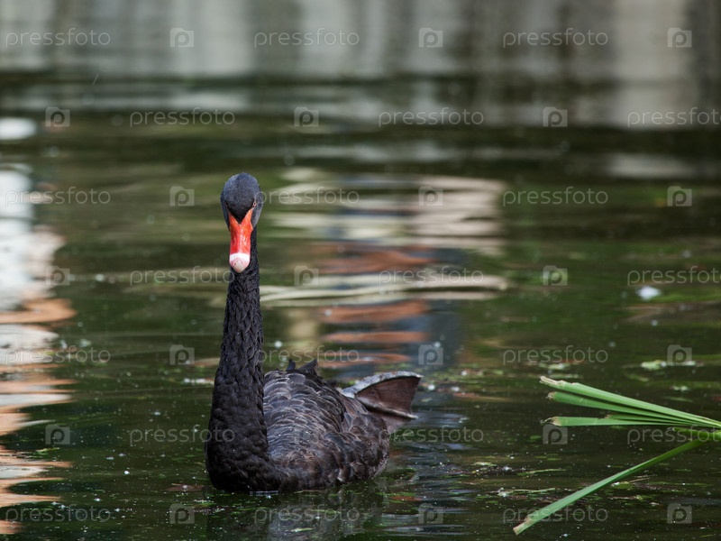 Черный лебедь плавает в пруду