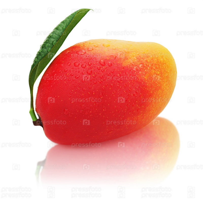 Свежий манго с зелеными листьями