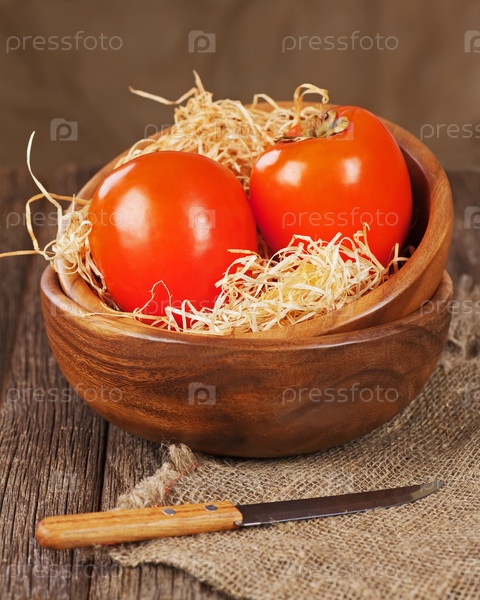 Хурма в миске на древесине