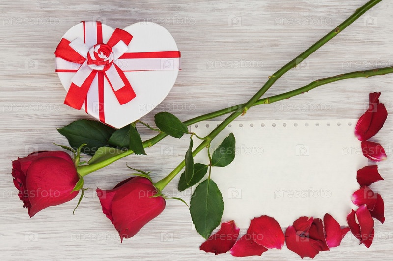 Подарок, розы и лист бумаги