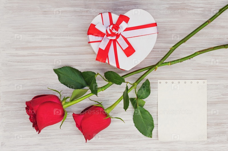 Подарок, розы и лист бумаги