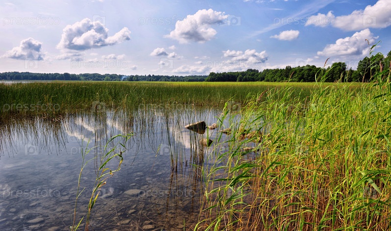 Заросшее травой летнее озеро