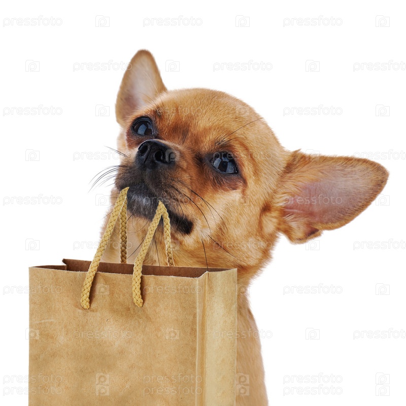Рыжий чихуахуа с пакетом