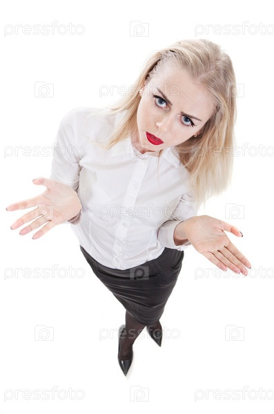 Удивленная деловая женщина на белом фоне