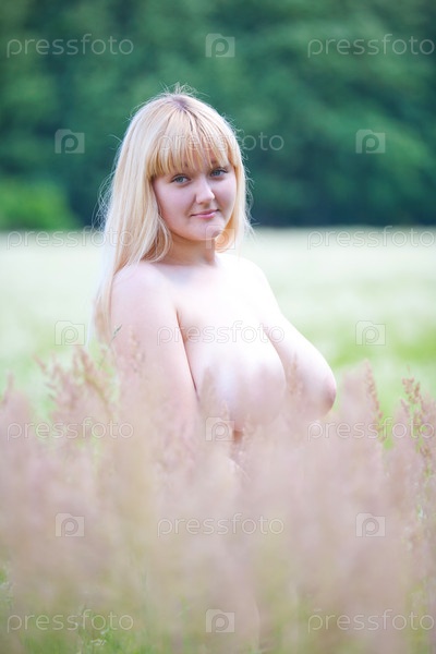 Девушка топлесс на летнем лугу