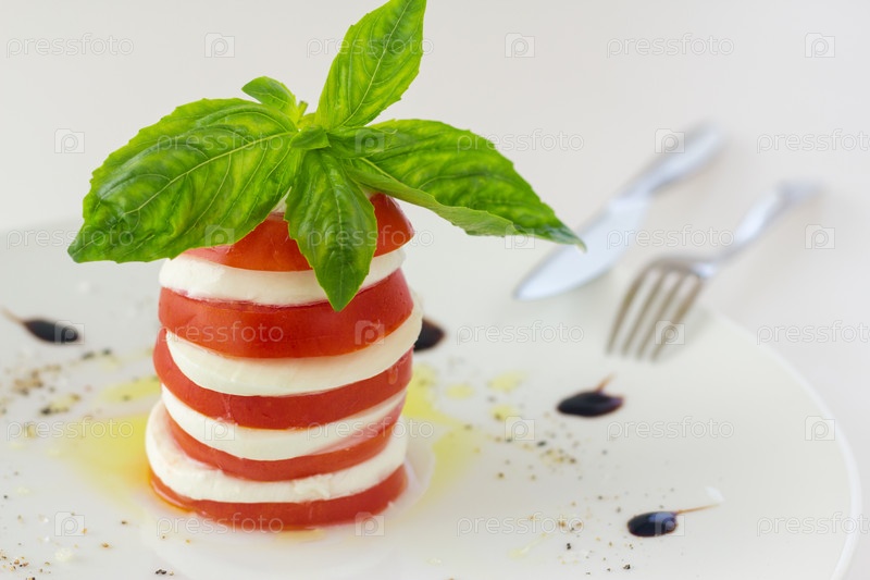 Салат из помидоров и сыра моцарелла с базиликом