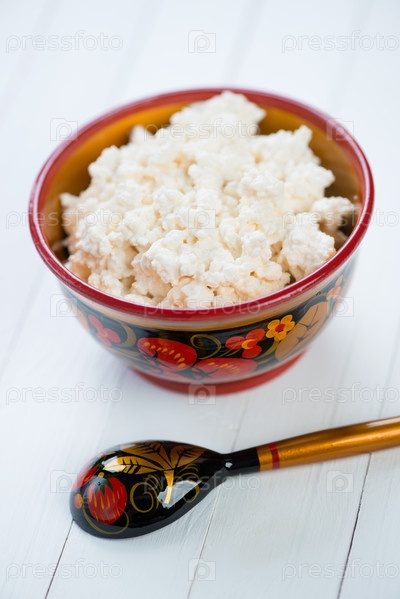 Творог в деревянной хохломской посуде