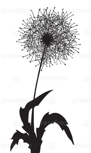 Черный одуванчик на белом фоне