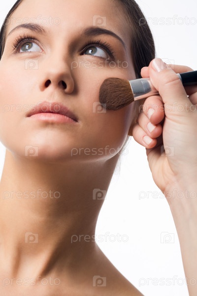 Свежая девушка с процедурой макияжа на белом фоне