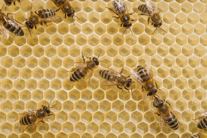 Пчелы на сотах с медом