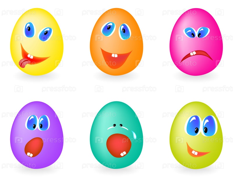 Пасхальные яйца со смайлами на белом фоне