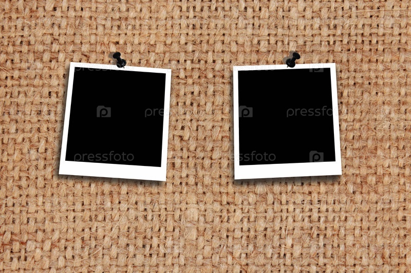 Две пустые фотографии на серой мешковине