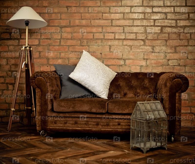 Интерьер лофта с бархатным диваном
