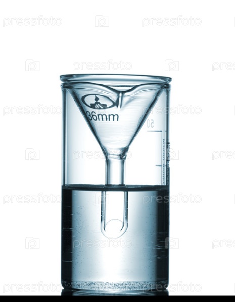 Изолированный химический стакан с воронкой на столе