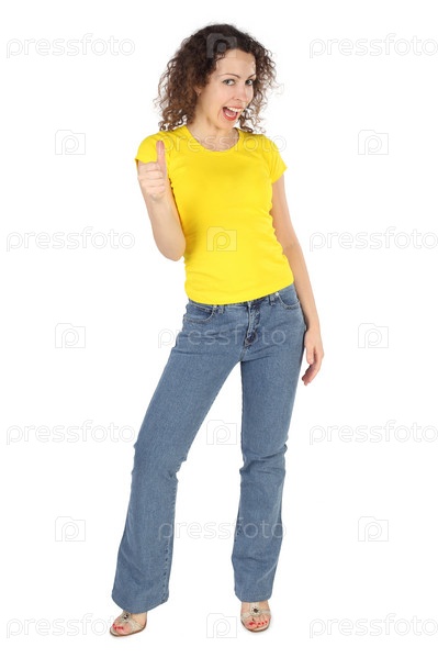Молодая женщина показывает, что все ОК, изолирована на белом