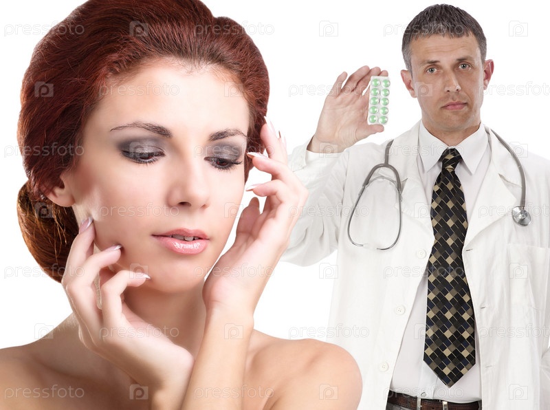 Девушка и доктор на белом фоне