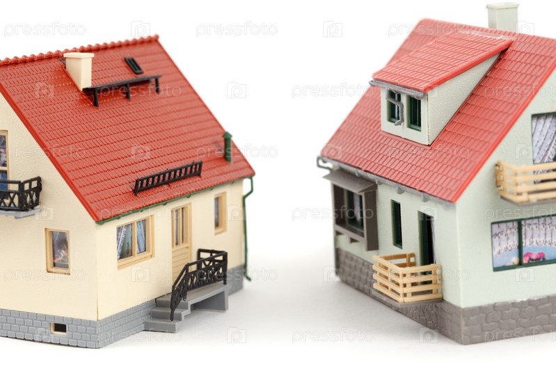 Модели двух домов на белом фоне