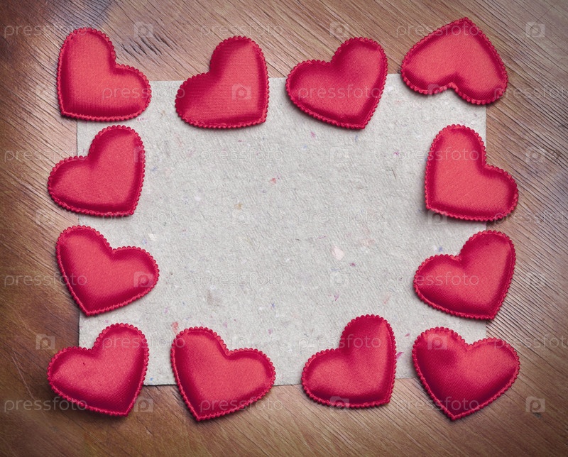 Красные сердечки на фоне старинной бумаги