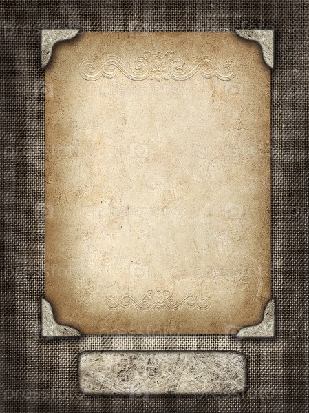 Винтажная открытка в резной раме на фоне ткани