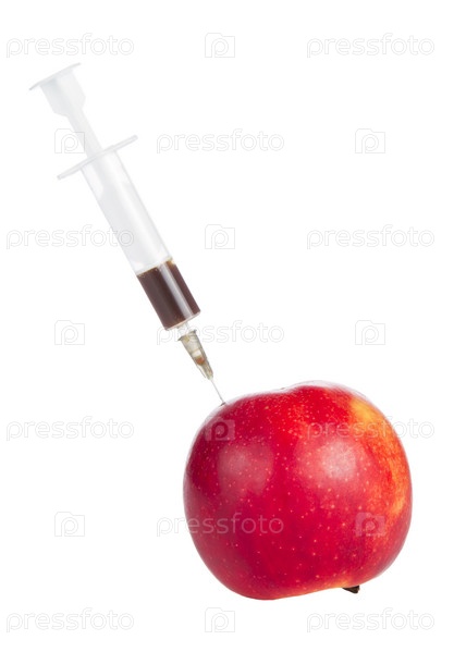 Яблоко с шприцом