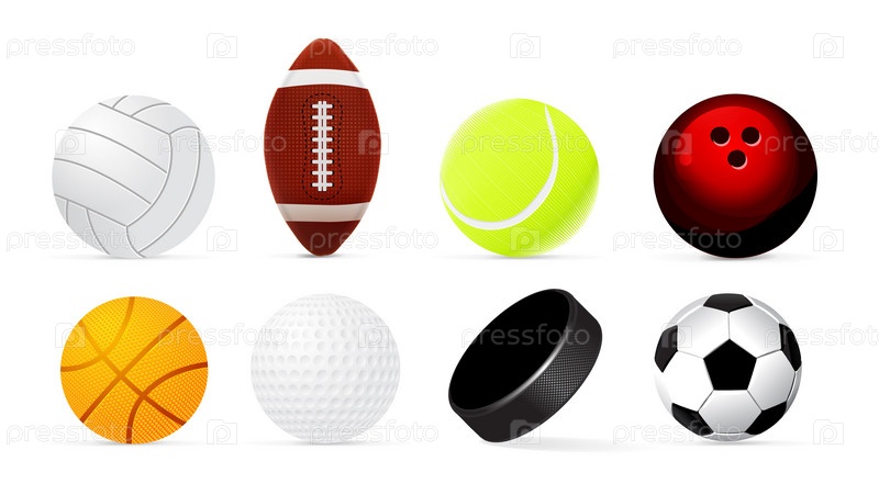 Векторное изображение мячей и шайбы на белом фоне