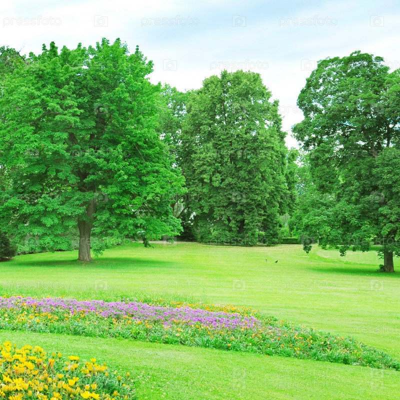Газоны и цветник в летнем парке