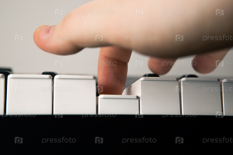 Клавиши пианино и человеческий палец