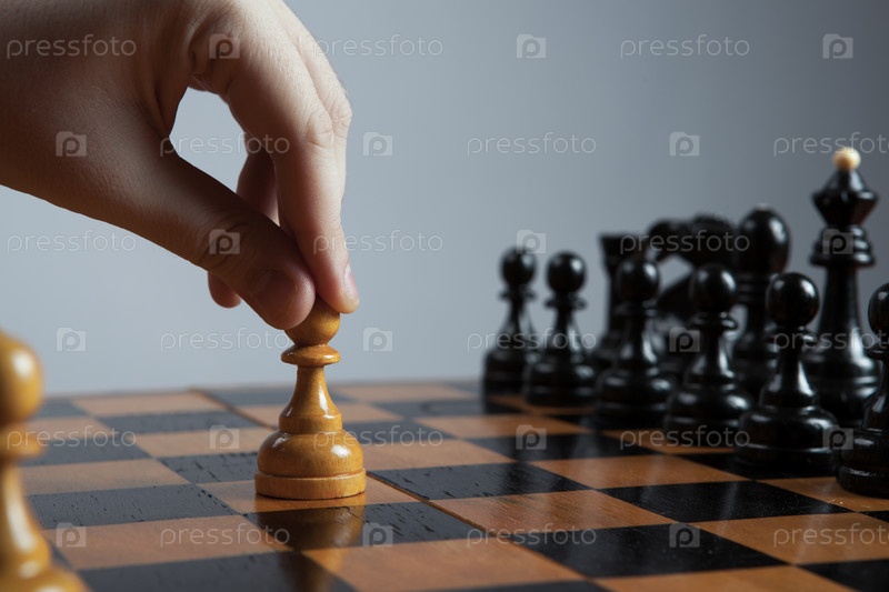 Человек делает ход пешкой в шахматах