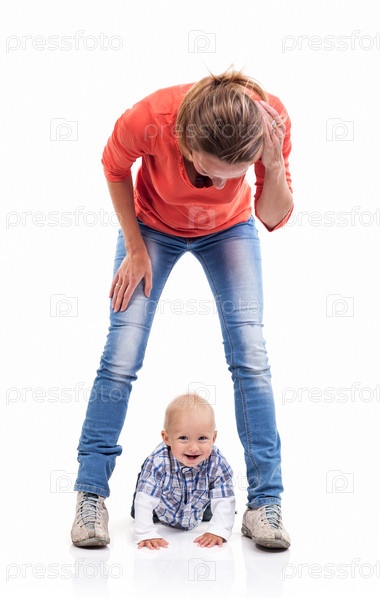Молодая мать играет с сыном