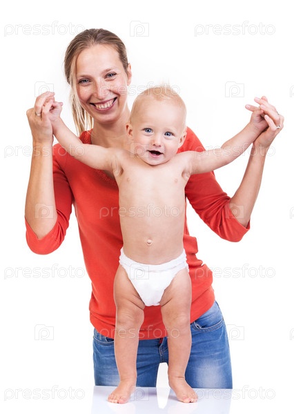 Малыш учится ходить с помощью матери